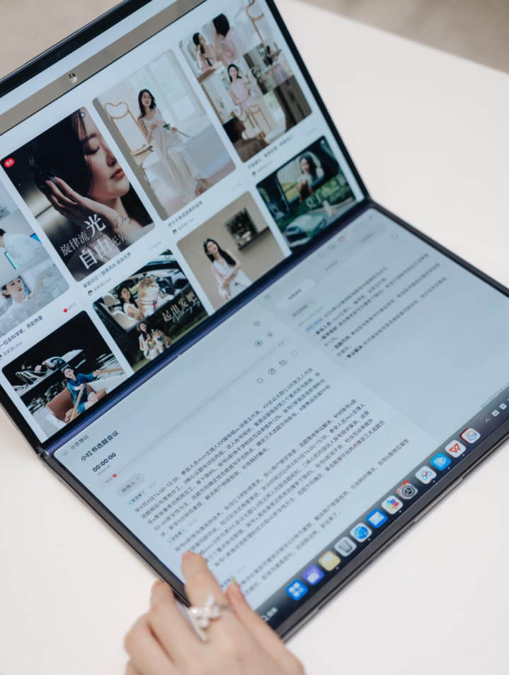 合上时,它仅相当于13英寸大小,便于携带;展开后,则化身为18英寸沉浸式大屏,实现了大屏办公与轻薄便携的完美平衡。机身重量仅1.16kg,展开厚度薄至7.3mm,比同类产品更轻便。这不仅解决了传统笔记本在便携性和显示面积间的矛盾,还为商务精英、创意工作者等高端用户提供了灵活适应的解决方案。