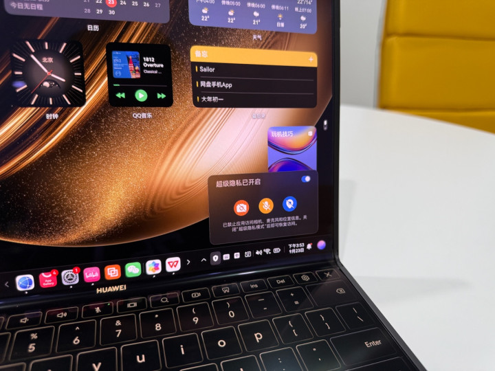 流畅性是另一大亮点。方舟图形引擎基于用户场景动态调整刷新率,确保多窗口稳定运行。应用和文档秒级启动,1GB大小的PPT仅需1秒打开。休眠唤醒技术让开盖即用,Wi-Fi、蓝牙等驱动状态同步,即时通讯应用秒级恢复。智能感知机制通过软硬协同,提升流畅度20%,避免大文件加载卡顿或多窗口死机。