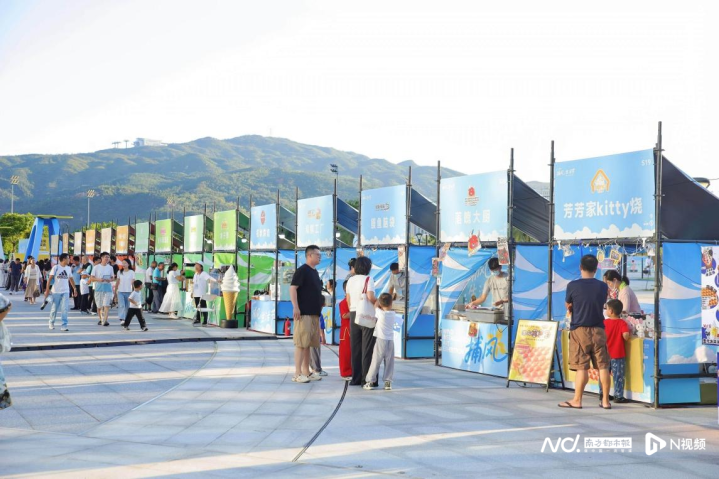 不远处,美食的香气在风中弥漫。80家美食品牌汇聚捕风市集,涵盖老字号经典与网红新锐,摊位前人头攒动。