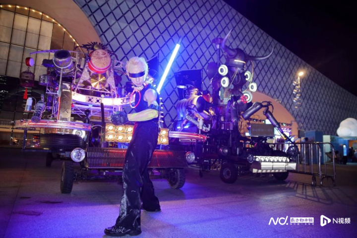 现场,5米高的夜光赛博机车“炼丹炉的士高”融合炼丹炉的神秘与迪斯科的复古;象征勇敢与冒险精神的“牛啤骑士”将牛的形象融入骑士盔甲与战车;IAMKARORO跳出美术馆,以装置车为移动展台开启城市巡游;“节奏猩人”用创意乐器打造不设限的街头音乐现场;舞蹈艺术家秦然则融合新国风美学与先锋肢体语言,展开一场传统与当代的跨时空对话……